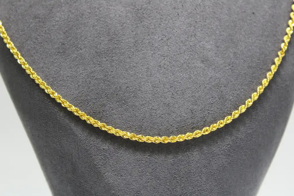 Maden: Altın Ayar: 14 Ayar Gram: 6.22 GR Renk: Sarı Tür: Kolye Model: Halat Ölçü: 75 CM